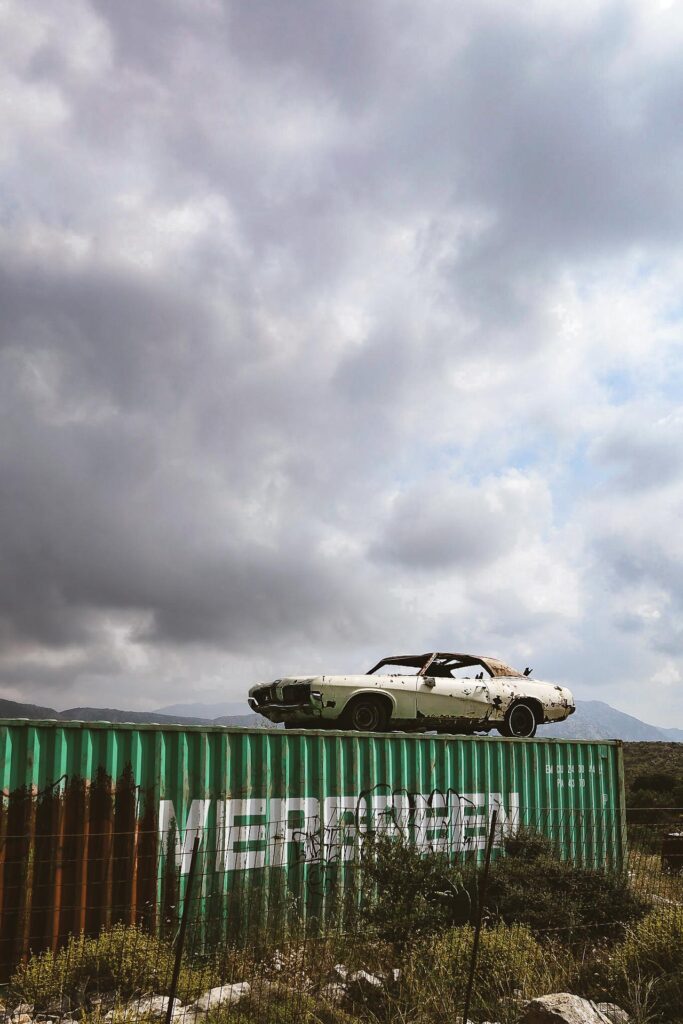 Ebenso faszinierend ist das Auto fahren auf Kreta. Ich gebe zu, anfänglich etwas überfordert gewesen zu sein. Verkehrsregeln sind wohl eher als Empfehlung zu verstehen. Nach kurzer Eingewöhnung passt man sich an und schwimmt einfach im Strom der zum Teil deutlich ramponierten Autos mit. Stichwort ramponierte Autos: Während in Deutschland dem Prüfer schon bei einem eingerissenen Heckscheibenwischergummi die Tränen in die Augen steigen, sind Beulen, Defekte und verrostete Karosserien auf Kreta ganz normal. Glaubst du nicht? Dann schau hier.